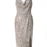 Sukienka AGGI Kim Champagne to połączenie wyrafinowanego kroju z subtelnymi detalami, które nadają jej niepowtarzalny urok. Dekolt w serek pięknie podkreśla szyję, podczas gdy dopasowany fason modeluje sylwetkę, sprawiając, że każda kobieta czuje się wyjątkowo pewna siebie i elegancka.